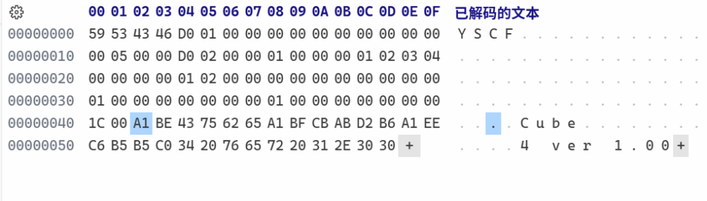 使用 VSCode 的 Hex Editor 或其他十六进制编辑器打开 ysbin/yscfg.ybn 文件: